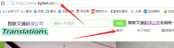 点击首页出现的是http://www.bjzlwt.cn/sy这个网址应该设置的链接为http://www.bjzlwt.cn/