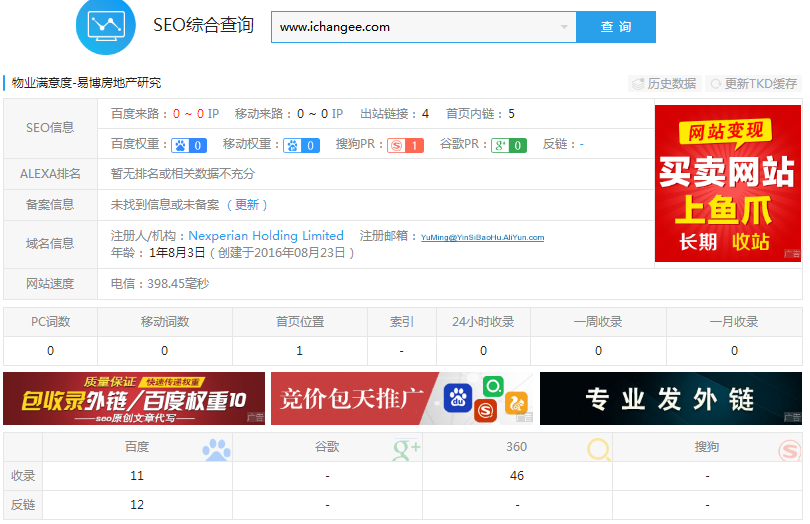 1.域名问题未做301跳转需要进行域名管理权限的设置,如果不进行301的跳转网站的权重会分散到根域名和www上这样做需要两倍的精力去优化一个关键词,所以需要进行整合到一起。让打开ichangee.com跳转到www.ichangee.com上就行了。