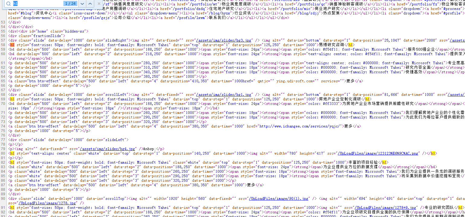 4. 网站的首页出现H1标签过多会造成百度降权处理的,我们需要消除掉,只需要在网站的logo图片上面加上一个就行,H1是需要唯一性的相当于一个页面只需要强调一个地方就行过多的话就会被百度惩罚掉网站。