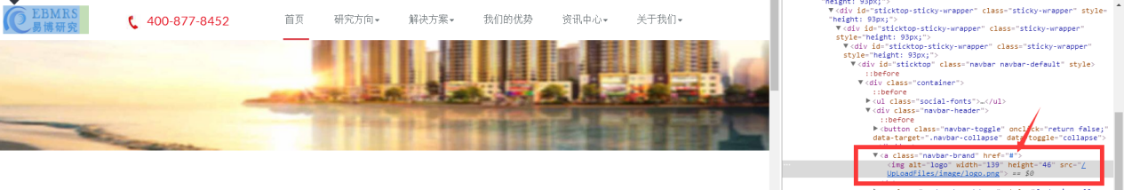 5. 网站的logo图片里面不包含alt标签的设置还有就链接是个#直接返回的首页这样做是不正确的返回首页的我们应该加上首页的网址即可,还有就是alt标签设置的关键词我们设置为易博客户满意度研究公司就行了,最好在logo上面加上H1标签注释重要性就行了。